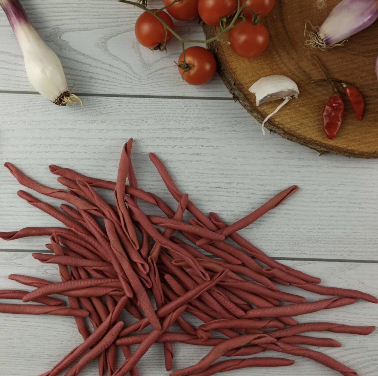 Expertly rolled and worked "in the iron", gives the macaroni the title of fresh homemade pasta par excellence. Onion flavoured.