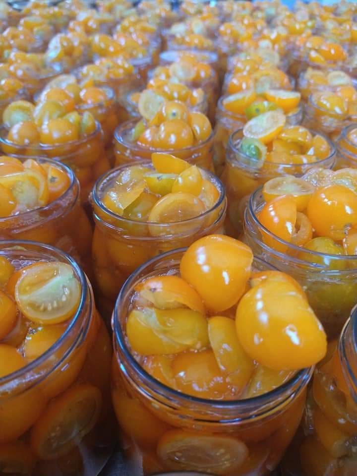 We started making tomatoes puree of ciliegino, datterino and marinda tomatoes and after few years we made the tomato water, started to preserve tomatoes in it, the onion Giarratana's water, then the hand peeled tomatoes, we created the stardust line with powders tomato, orange and lemon zeste, capers, wild fennel, redbeets and granulated olives . Then the candied tomatoes, bell peppers and capers.