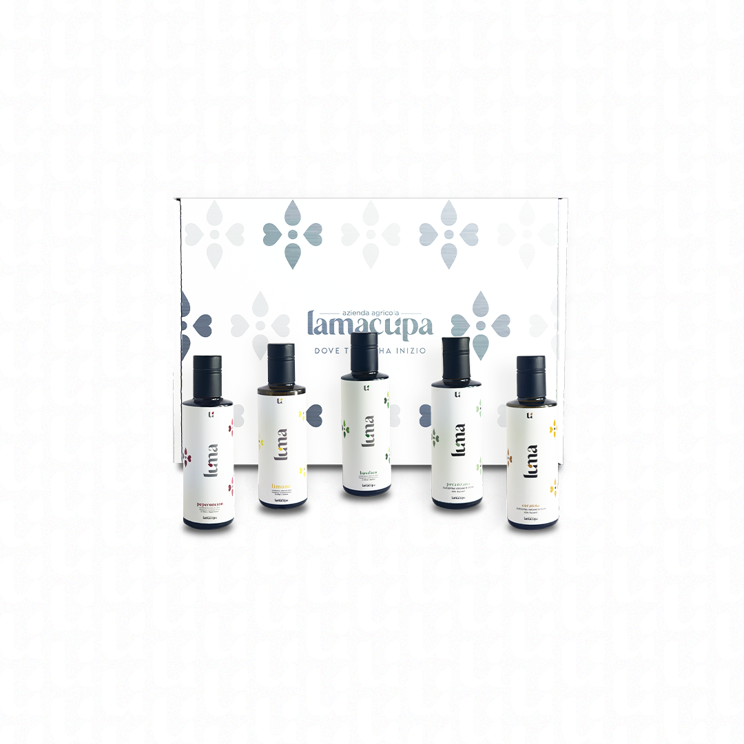 Inside our boxes there are all the lines of our oils and aromatic oils in the lemon, basil and chilli pepper versions