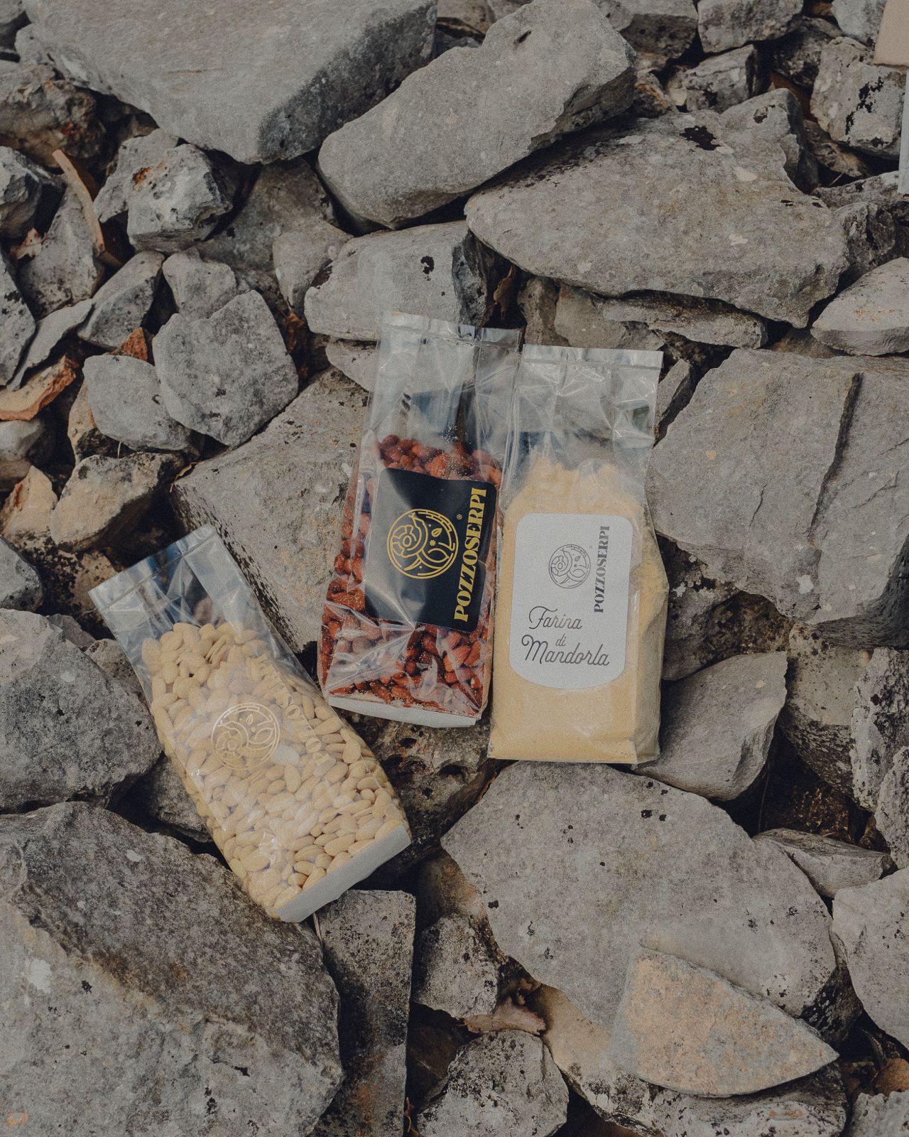 Our peeled almonds are carefully selected from the best almonds grown in our Apulian orchards and artisanally processed to remove the skin while preserving their full flavor and freshness. The result is a sweet almond with a rich taste and soft texture, perfect for enjoying as they are or using in the kitchen. From these peeled almonds, we also produce our almond flour, finely ground to retain all the aroma and nutritional benefits of the fruit. Pozzo Serpi almond flour is ideal for both sweet and savory recipes: it makes cakes, cookies, and tarts soft and fragrant, while adding a natural, authentic touch to savory dishes. Both products embody our philosophy: quality, tradition, and attention to every detail, offering you genuine almonds that enhance your cooking and well-being.