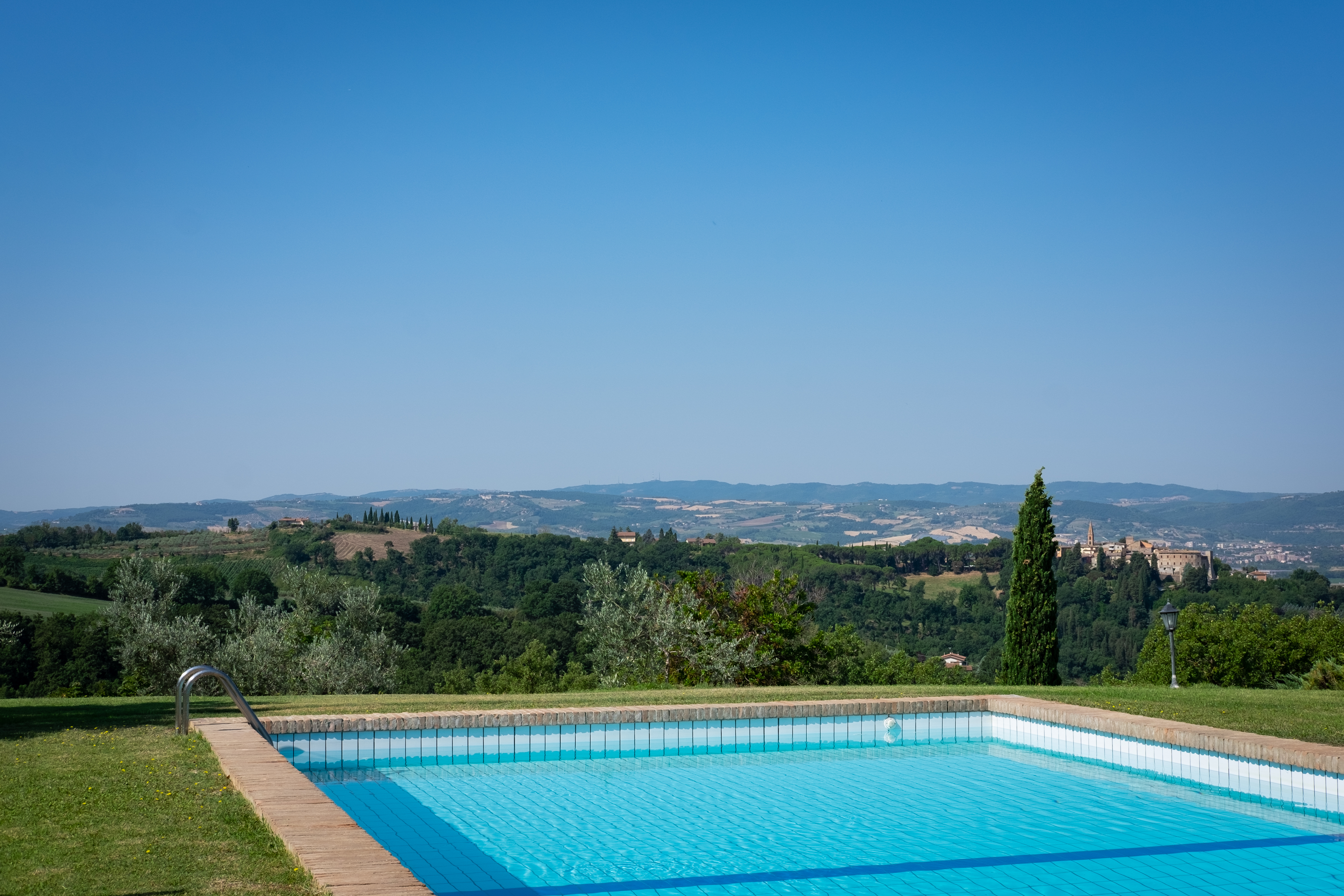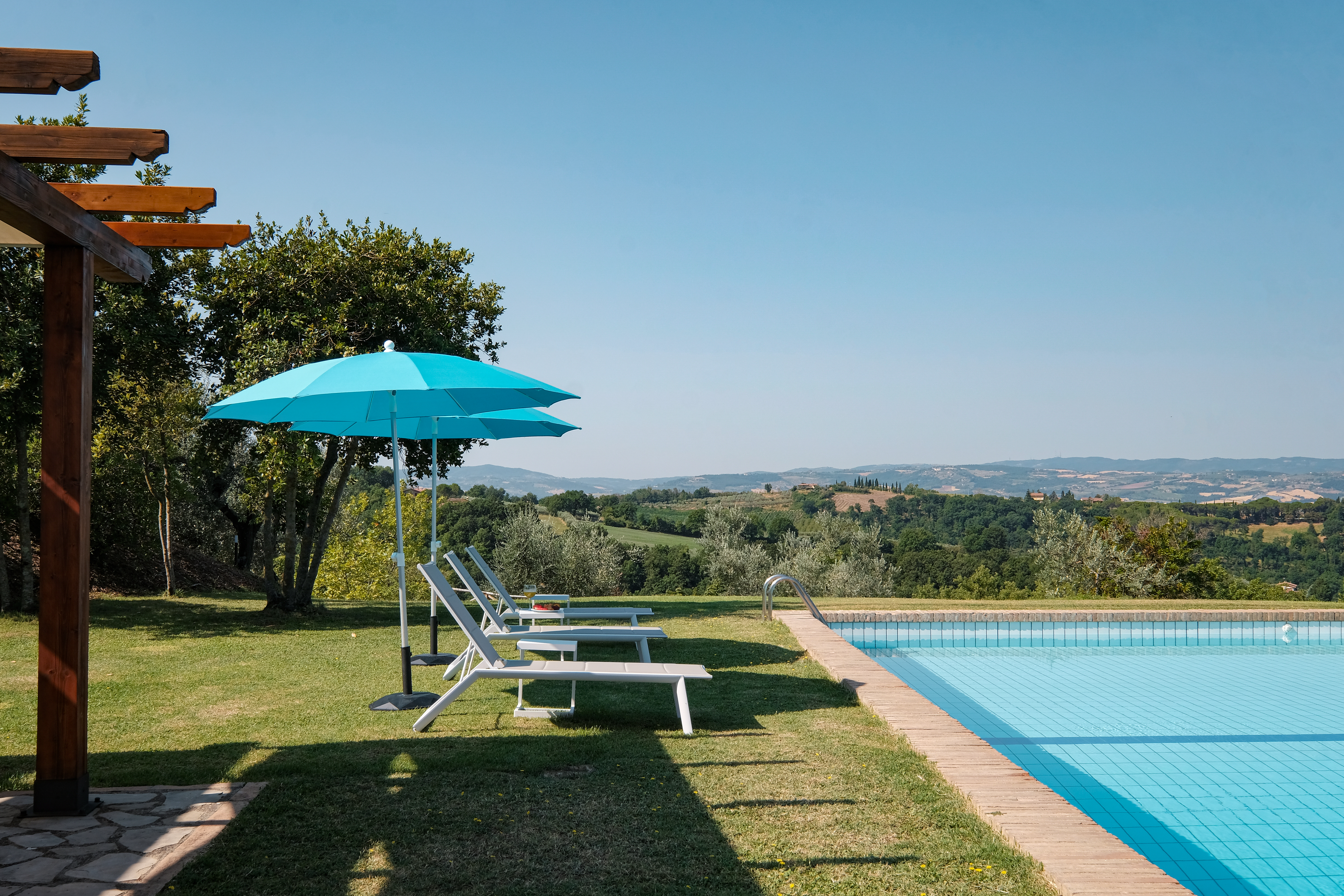 The pool – 15×6 mt and 2,10 mt deep – is located on a natural terrace on the top of the hill.