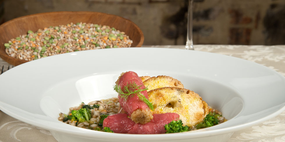 Enjoy our extra virgin olive oil, organic legumes, and cereals, paired with locally selected wines from the company.