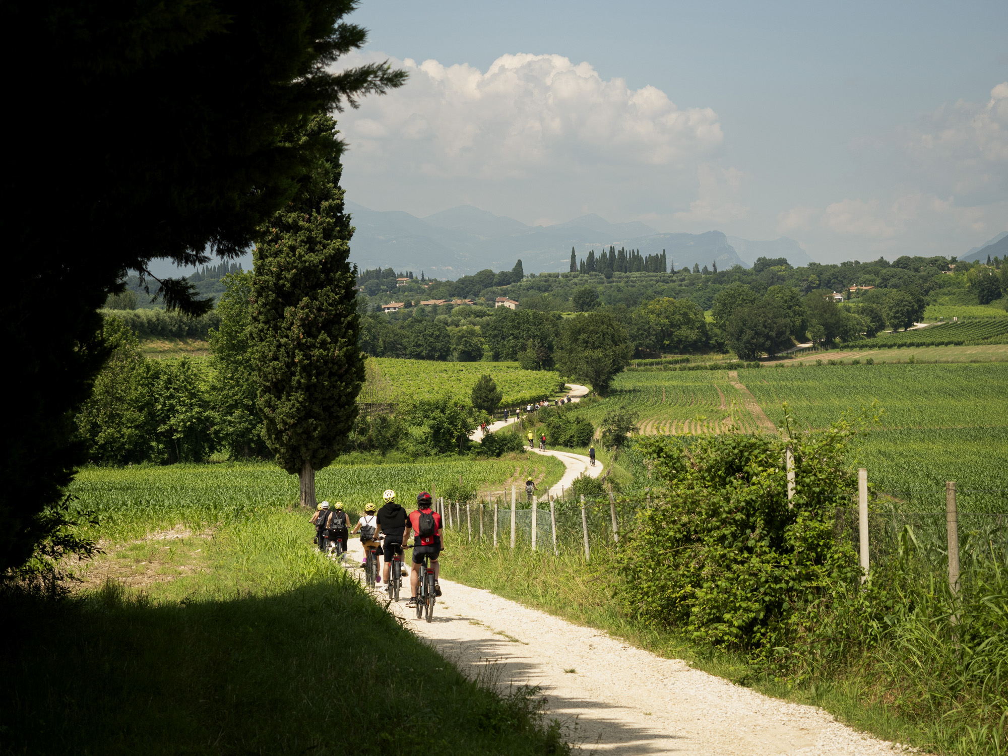 Guided easy tours for big bike groups. Departure directly from the Hotel (if possibile); expert English-speaking tour leaders; talior made itineraries; van support; wine tastings or other food experiences. In Verona, Valpolicella, Lake Garda