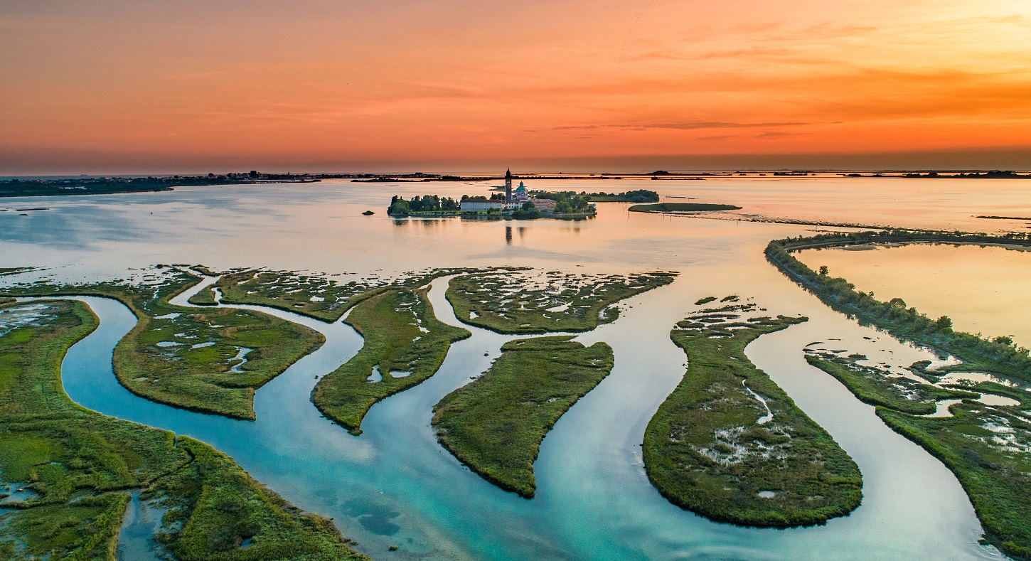 The lagoon, where Grado gently lies, is a natural setting of unquestionable beauty and extraordinary natural wealth, in constant evolution. It is a unique, uncontaminated landscape that extends over 16,000 hectares of land and sea, for 32 kilometres between the mouths of the Isonzo and the Tagliamento, dotted with a hundred or so small islands. Its origins are quite recent since, until the 5th century AD, the mainland prevailed in the area. The entire area is crossed longitudinally by the Litoranea Veneta waterway (already used in Roman times for navigation from Chioggia to Aquileia), a navigable waterway linking Venice with the mouth of the Isonzo and Trieste. In the lagoon, high and low tides alternate rhythmically, guaranteeing a constant exchange of water which, mixing with the fresh water of the rivers, creates an environment favourable to the life of a large number of plant species (tamarisks, elms, poplars, junipers, pines), fish and birds. The movement of the tides also causes portions of land to emerge and submerge, appearing and disappearing from view (and can become dangerous for inexperienced navigators).