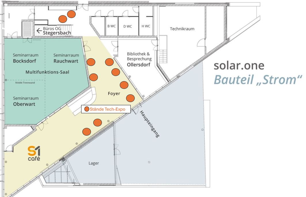 Im Ausstellungsbereich des solar.one gibt es die Möglichkeit für alle Teilnehmer:innen, in kurzen Gesprächen mehr über die Reallabor-Initiativen zu erfahren und weiterführende Gespräche zu vereinbaren.