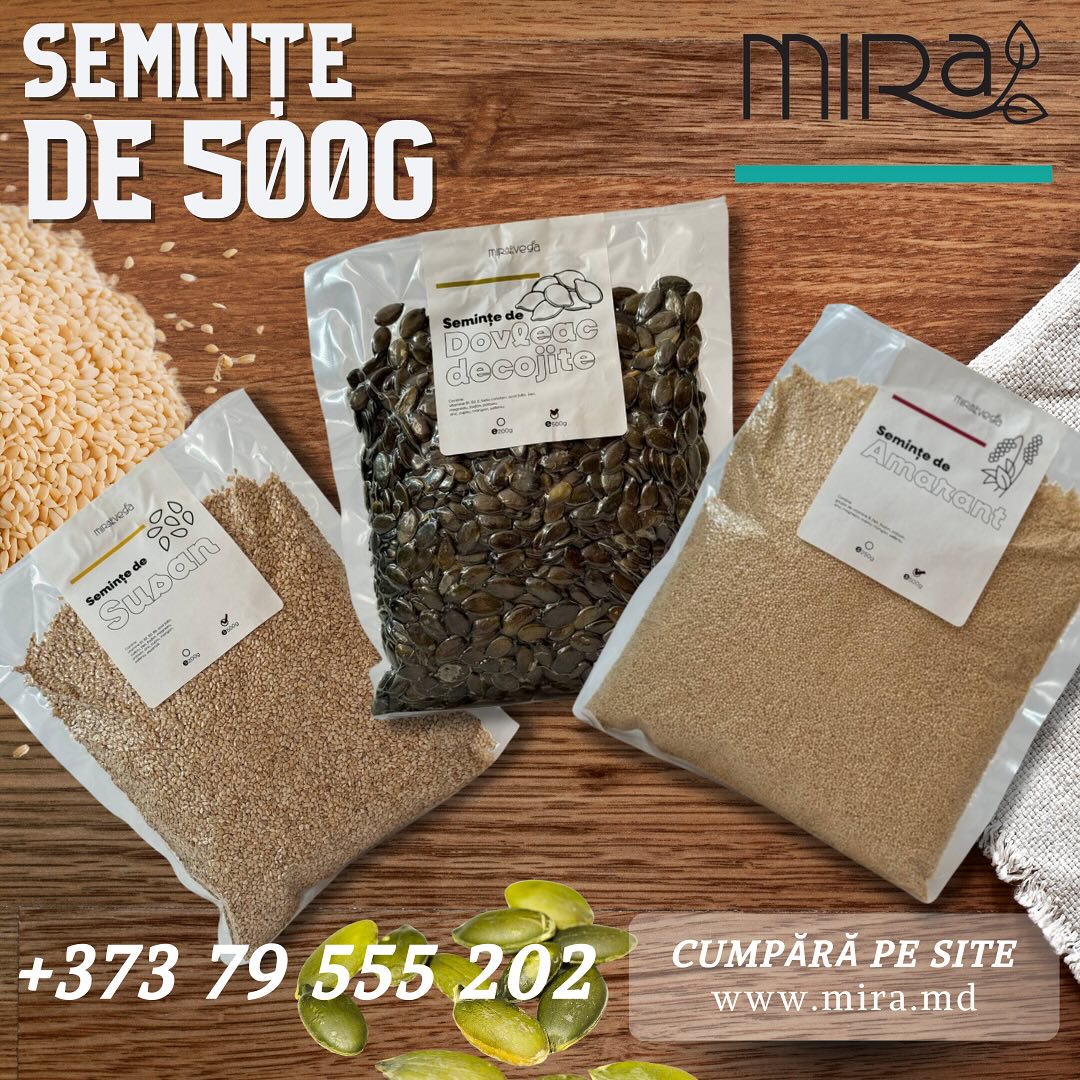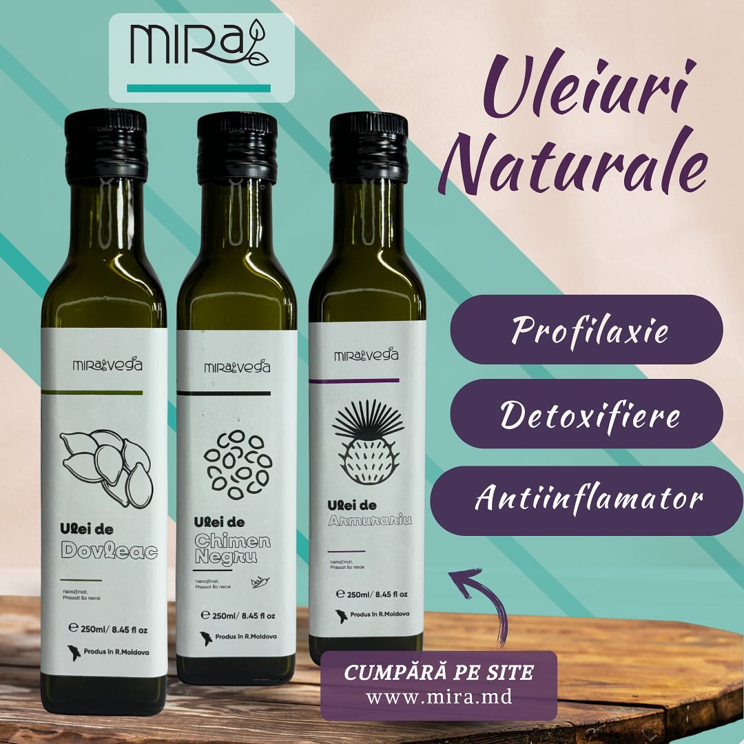 Mira Vega (or MIRA) is a Moldovan brand, April 2019, specializing in natural products such as cold-pressed oils, seeds, nuts, teas and soaps, emphasizing unprocessed, healthy products, offering varieties such as sunflower oil, flax and milk thistle, being a local producer of healthy foods.