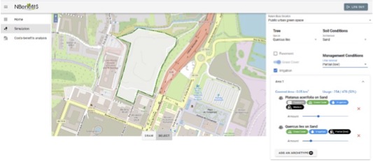 The tool integrates system dynamics, urban ecology, and monetary valuation methods to provide a comprehensive assessment of NBS projects over their entire lifespan. Its interactive web-based interface allows users to compare different planning and management scenarios, ensuring optimized investment decisions and better integration of ecosystem services into urban planning.