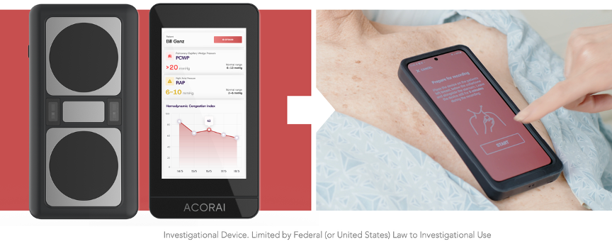 Acorai is developing a non-invasive hemodynamic monitoring device that estimates right (RAP)- and left-sided (PCWP) cardiac pressures