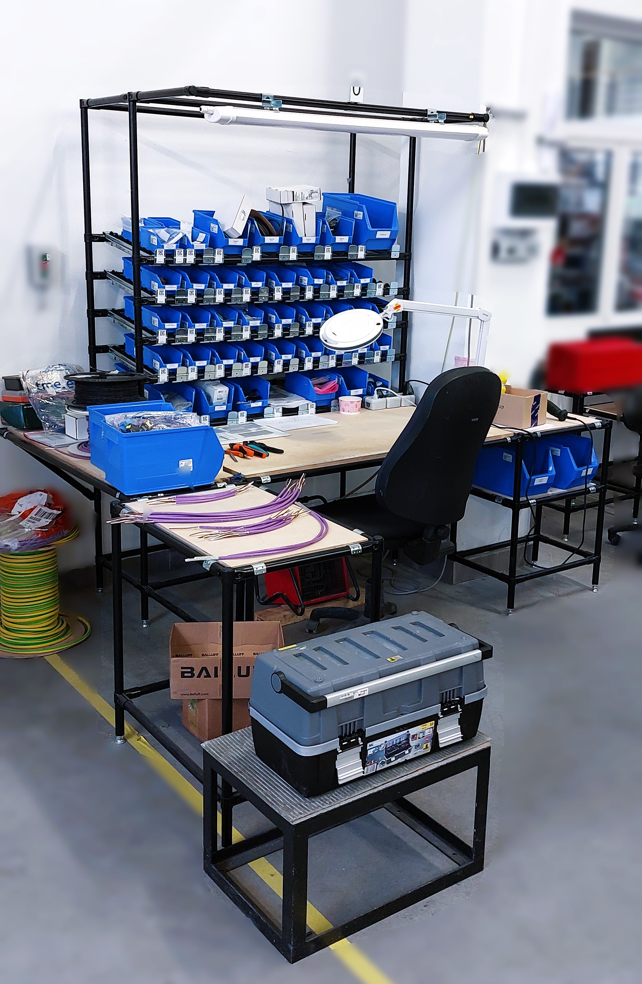 Egyedi munkaállomások fejlesztése és építése komplett gyártósorokhoz összeszereléshez, csavarozáshoz, teszteléshez, válogatáshoz stb. Teljes körű termeléstámogató rendszer áll rendelkezésre (MES, munkautasítások megjelenítése, nyomon követhetőség, kanban stb.)