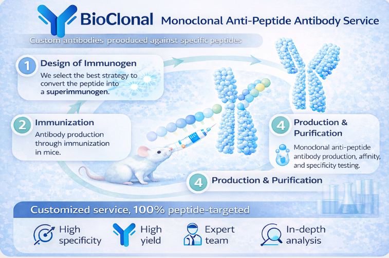 Si buscas desarrollar un anticuerpo monoclonal anti-péptido, BIOCLONAL actúa como socio tecnológico en modalidad de codesarrollo o servicio, acompañando a empresas biotecnológicas, farmacéuticas y grupos de investigación en todo el proceso de generación y validación del anticuerpo.