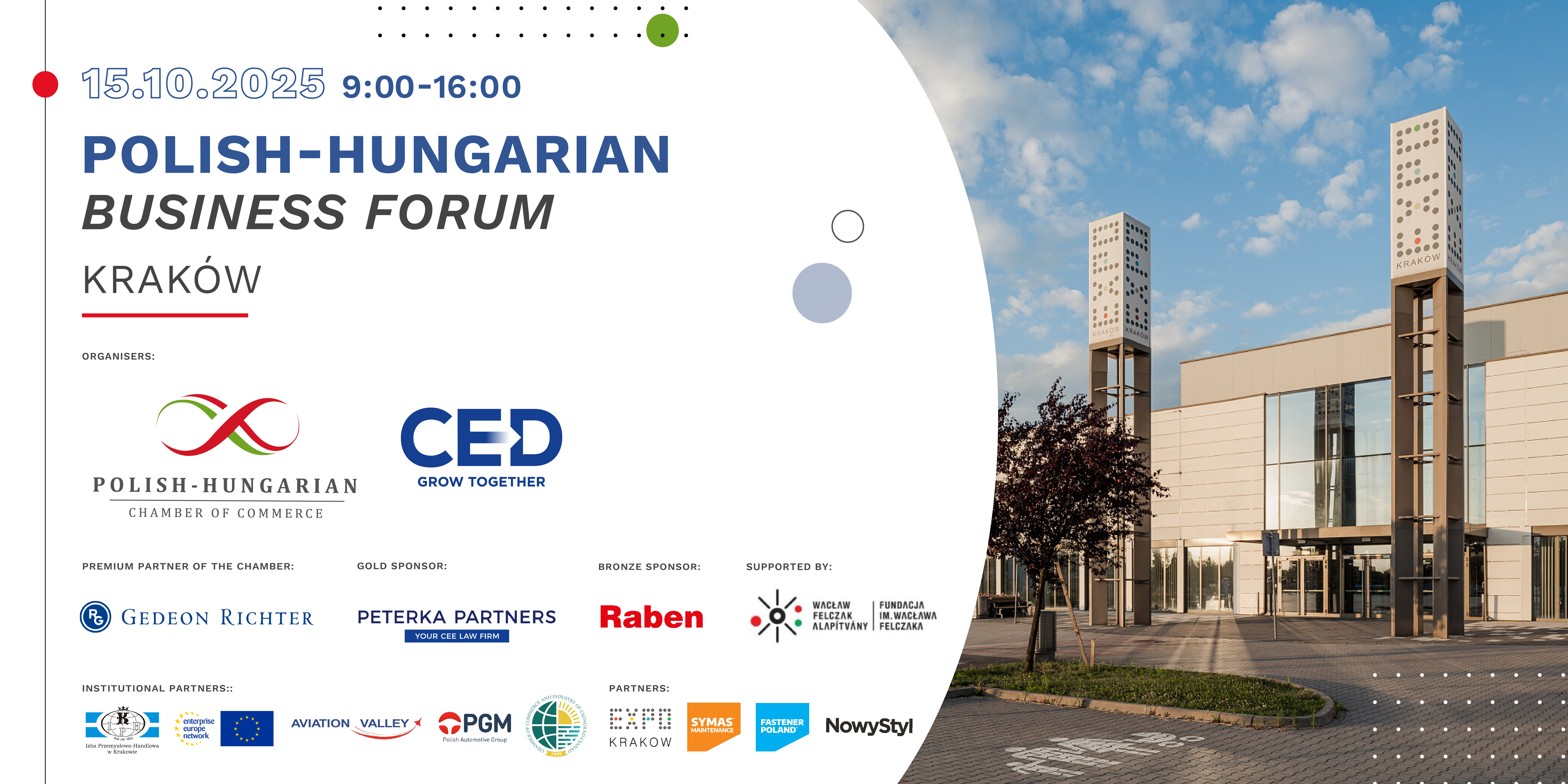 Partner institutions: Polish-Hungarian Chamber of Commerce, CED Central European Economic Development Agency, Aviation Valley, Polish Automotive Group, Chamber of Commerce of Csongrád-Csanád, Cracow Chamber of Commerce and Industry, Enterprise Europe Network,