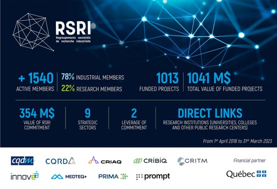 Mission of the Industrial Research Sector Groups (RSRI) is to establish and support a collaborative innovation ecosystem conducive to the development of strategic sectors of the economy for the benefit of research centers, businesses, and Quebec society. Representing Quebec's leading sectors, the RSRI are in a strong position to support Quebec's economic fabric in its quest for growth. The nine (9) groups have been designated by the Government of Quebec to act as intermediation and funding organizations for collaborative research and development (R&D).
