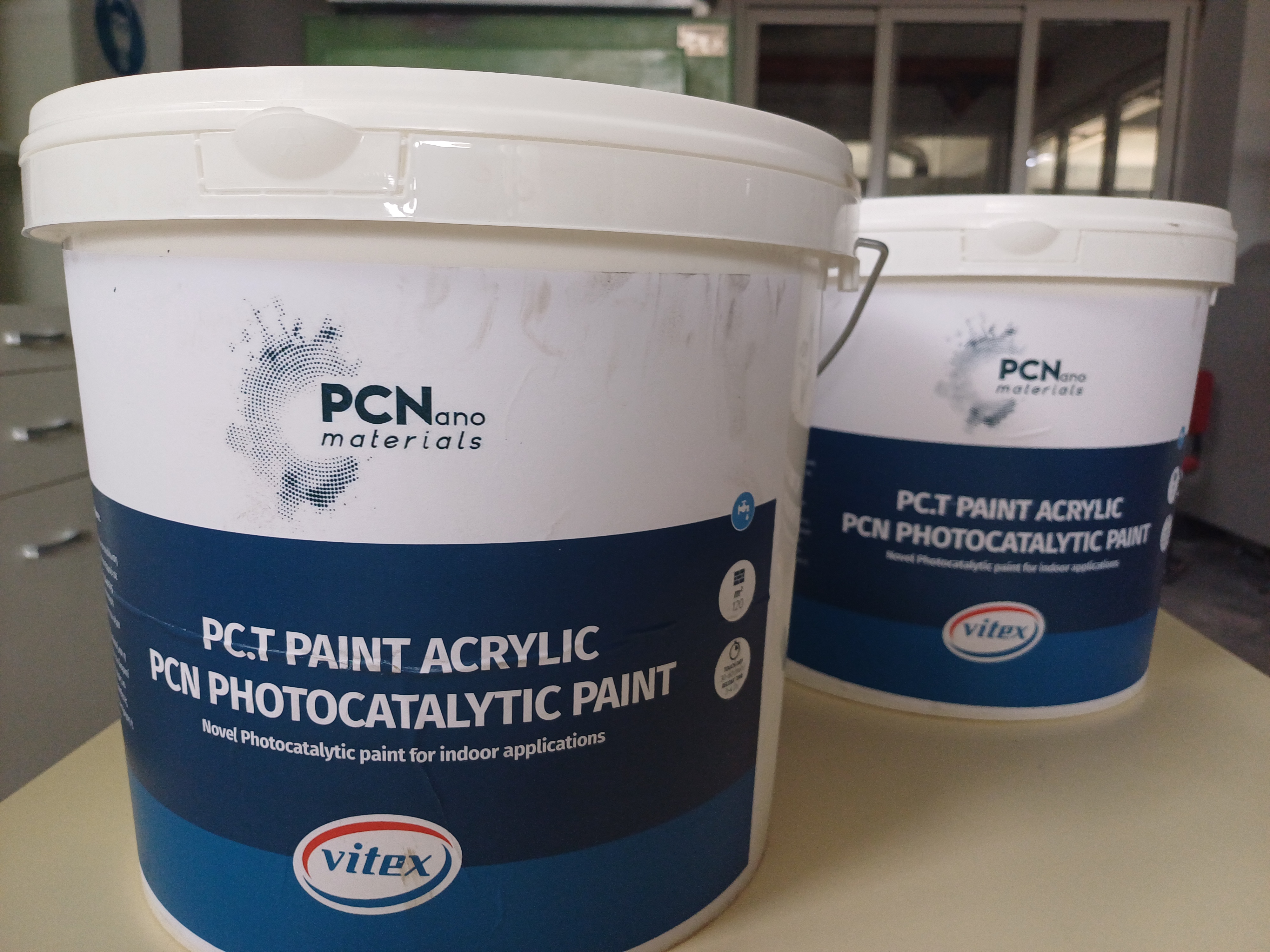 PCN Materials , (www.pcnmaterials.com) a spin-off of FORTH, has developed with VITEX the 1st and only photo-catalytic wet paint for indoor applications in Greece under the trade name VIEX FOS ( https://www.vitex.gr/product/vitex-fos/)..)