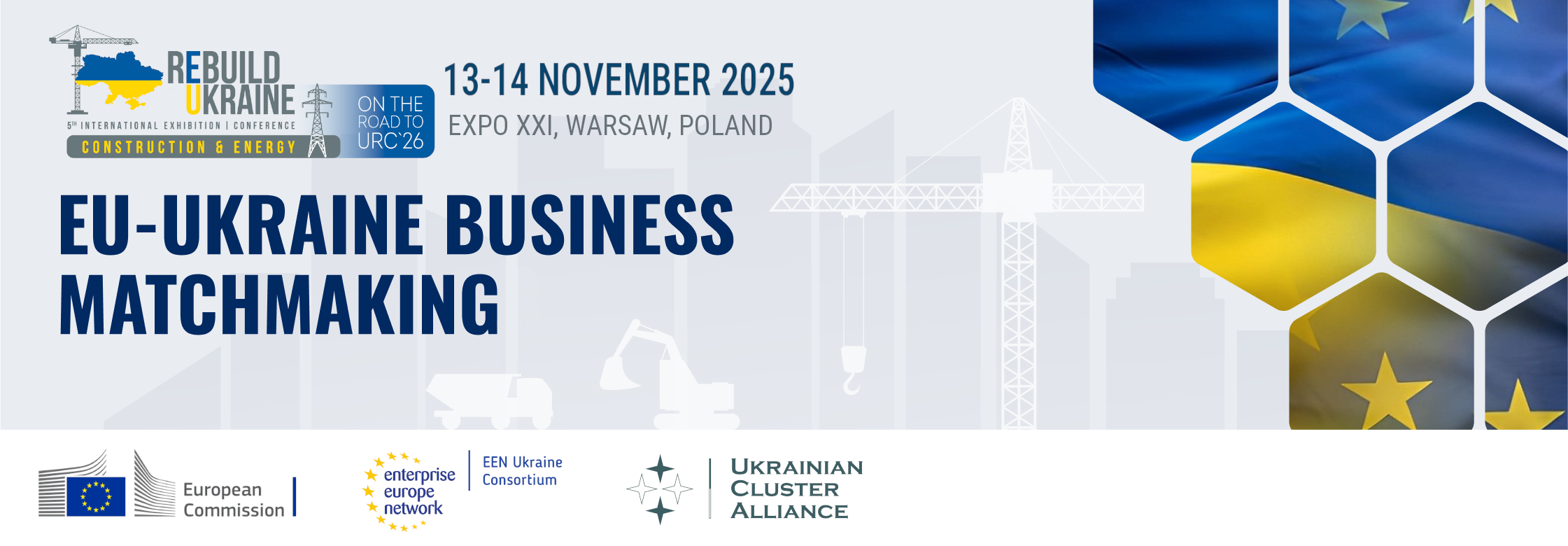 The Rebuild Ukraine Matchmaking Platform has been created with the support of Enterprise Europe Network in collaboration with clusters from Ukraine and the EU, with backing from the European Commission. It aims to facilitate direct B2B meetings for EU and Ukrainian participants of the Rebuild Ukraine exhibition, which will take place on November 13-14, 2025 in Warsaw.