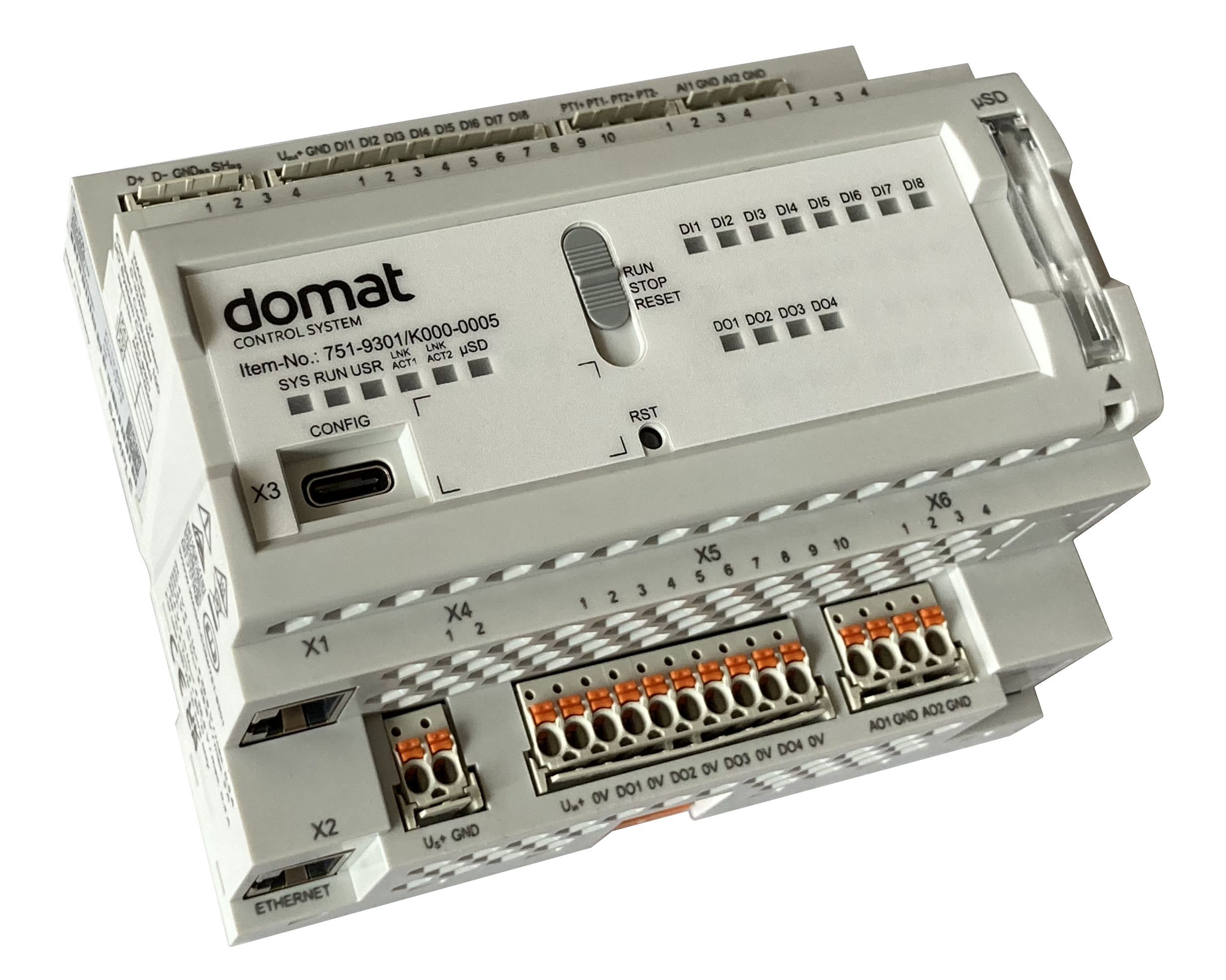 How they streamline integration: Every WALL PLC runs Domat Runtime with open protocol stacks, eliminating vendor lock-in while supporting both backbone (BACnet/IP, Modbus TCP/OPC UA/MQTT) and fieldbus (Modbus RTU, IEC 62056-21) communication. Twin-port Ethernet on most models acts as an integrated switch, enabling daisy-chain or line topologies without separate network hardware — critical for distributed HVAC plants or energy monitoring points. Direct expansion with standard 750/753 I/O cards means you can scale from basic gateway functions to full plant control using familiar, modular components.