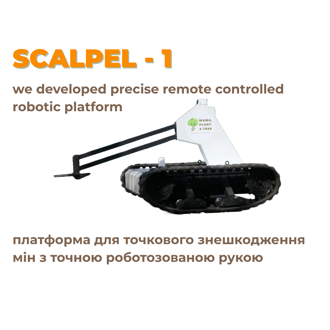 Scalpel - an affordable remote-controlled platform for clearance of anti-personnel mines with a motion sensor. Helps deminer with precise robotized hand