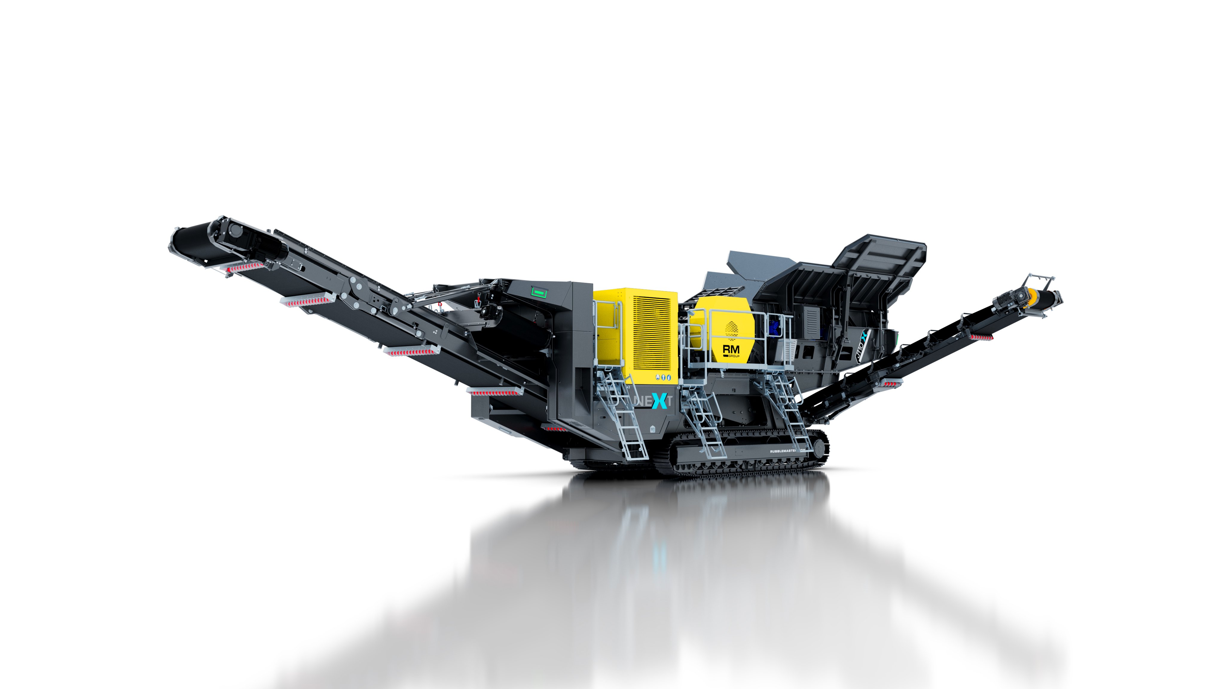 Rubble Master RM J110X Jaw Crusher - Best crusher in his class, biggest, heaviest jaw box, robust manufacturing, diesel hydraulic drive fuel-efficient crushers with flexible drive options: fully electric, diesel-electric, or hybrid.