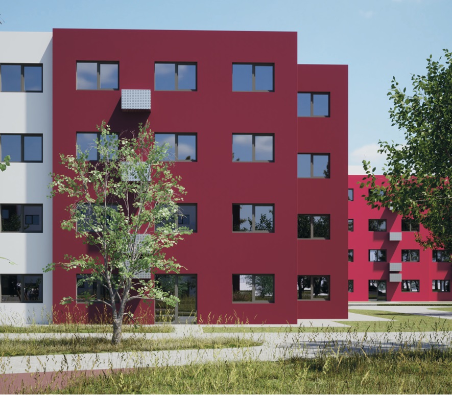 The goal is to build 28 four-story buildings for 3,472 people