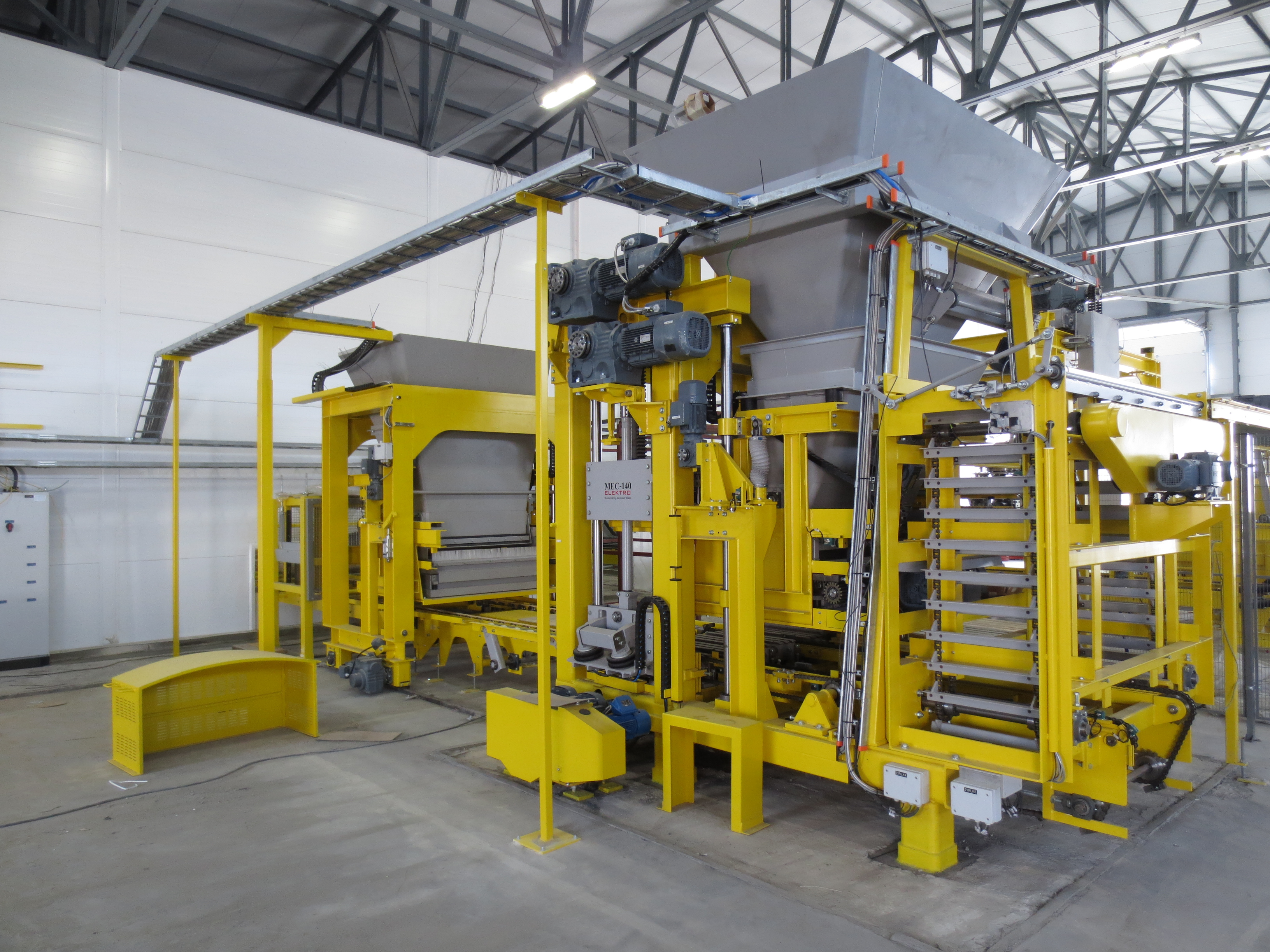 Mecmetal Oy is a Finnish company specializing in the manufacturing of turn-key concrete block machines and production lines with the highest level of automation and concrete product output capacity. Our block machine stands out from the rest, as the MEC Block Machine is fully electric, with servo motors replacing hydraulic systems completely. This leads to numerous benefits, including 90% greater energy efficiency, reduced maintenance, and lower operational costs.