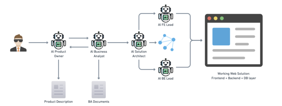 A proprietary SDK that generates complete software applications using interconnected AI agents.
