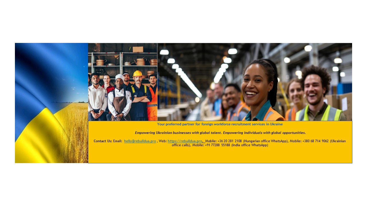 About RebuildUA: RebuildUA provides AI-powered foreign workforce recruitment services to accelerate Ukraine’s rebuild.