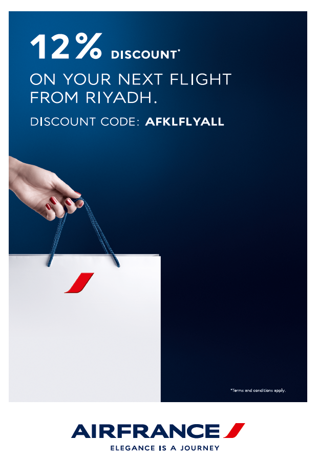 • Discount code is valid for online reservations only and booked on www.airfrance.sa or https://saudi.klm.com/