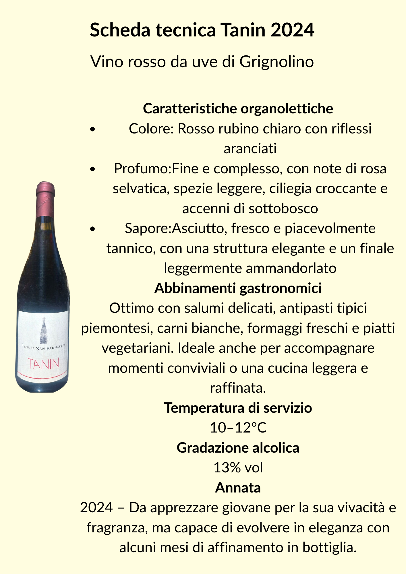 Tanin is the authentic expression of a region rich in history, culture, and winemaking tradition. This red wine, produced from Grignolino grapes grown on the hills of Monferrato, stands out for its unique personality: elegant, lively, and surprisingly refined.