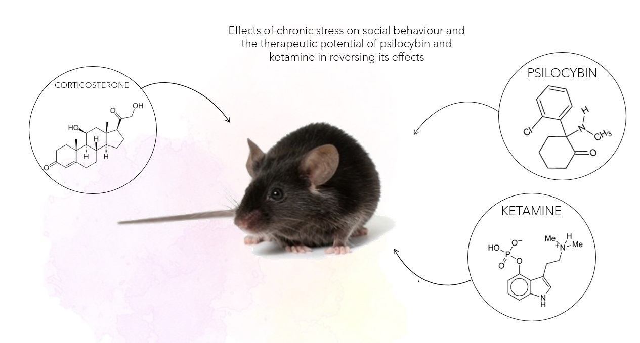 In the second part, I investigate the therapeutic potential of psilocybin and ketamine to reverse the effects of chronic stress. By analyzing how these substances influence neurotransmission and synaptic plasticity, I aim to understand their impact on improving social behavior. I also compare the distinct mechanisms and efficacy of psilocybin and ketamine in mitigating stress-induced social impairments.