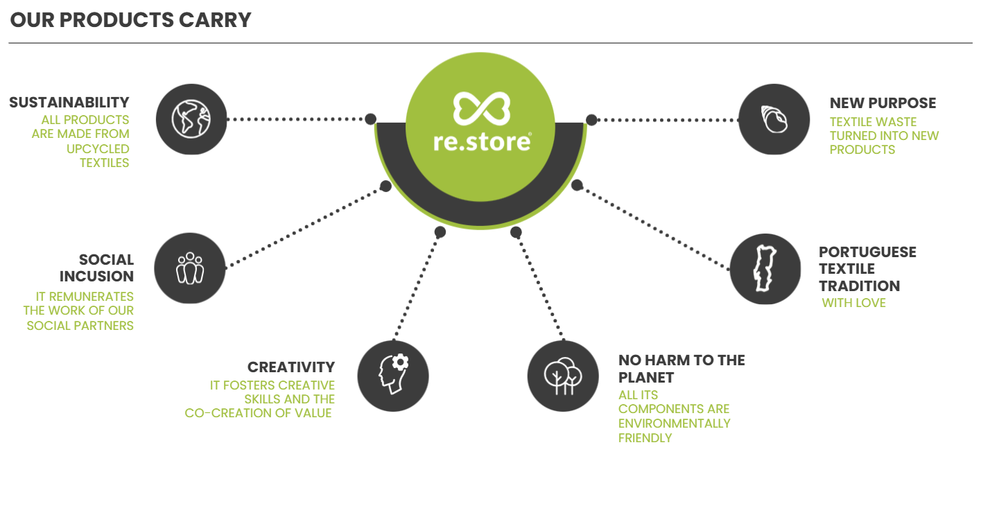 re.store is a Portuguese brand of textile accessories, which combines social innovation with environmental innovation and pedagogy actions to change current consumption habits.