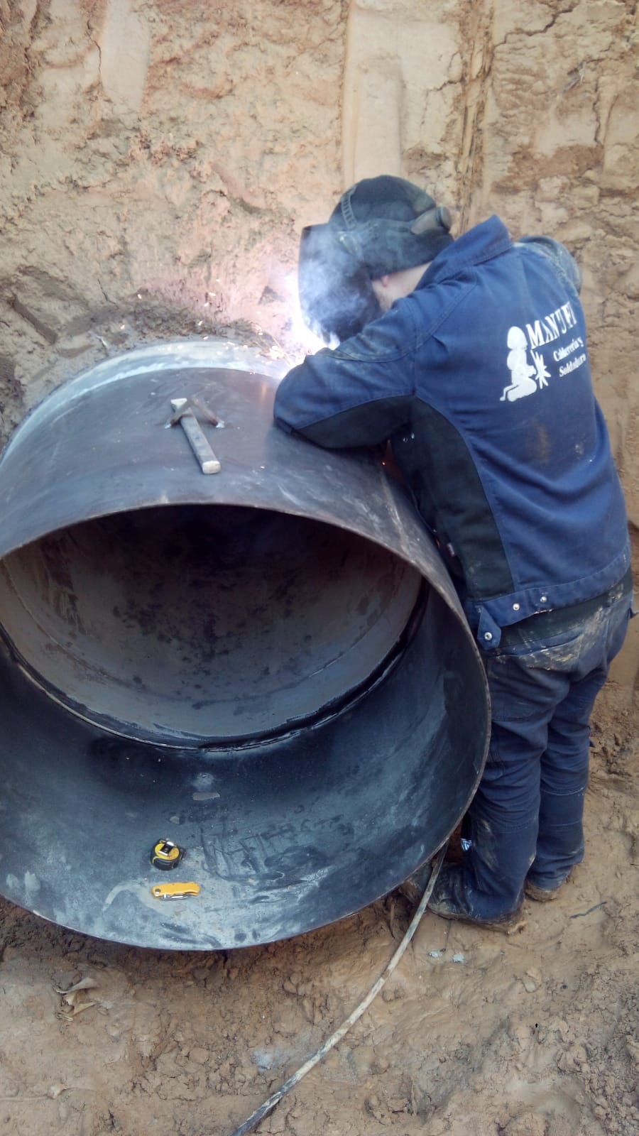 Manufacture in the workshop and assembly on site of pipes for a raft