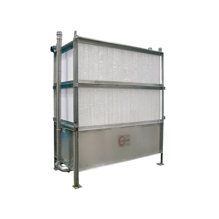 Consta de una estructura realizada en acero inoxidable donde se colocan las membranas. El permeado de cada membrana pasa a través de un tubo de silicona a un colector de PVC que recoge el agua total permeada. Diseñados para una fácil inspección y colocación por sistema de guías.