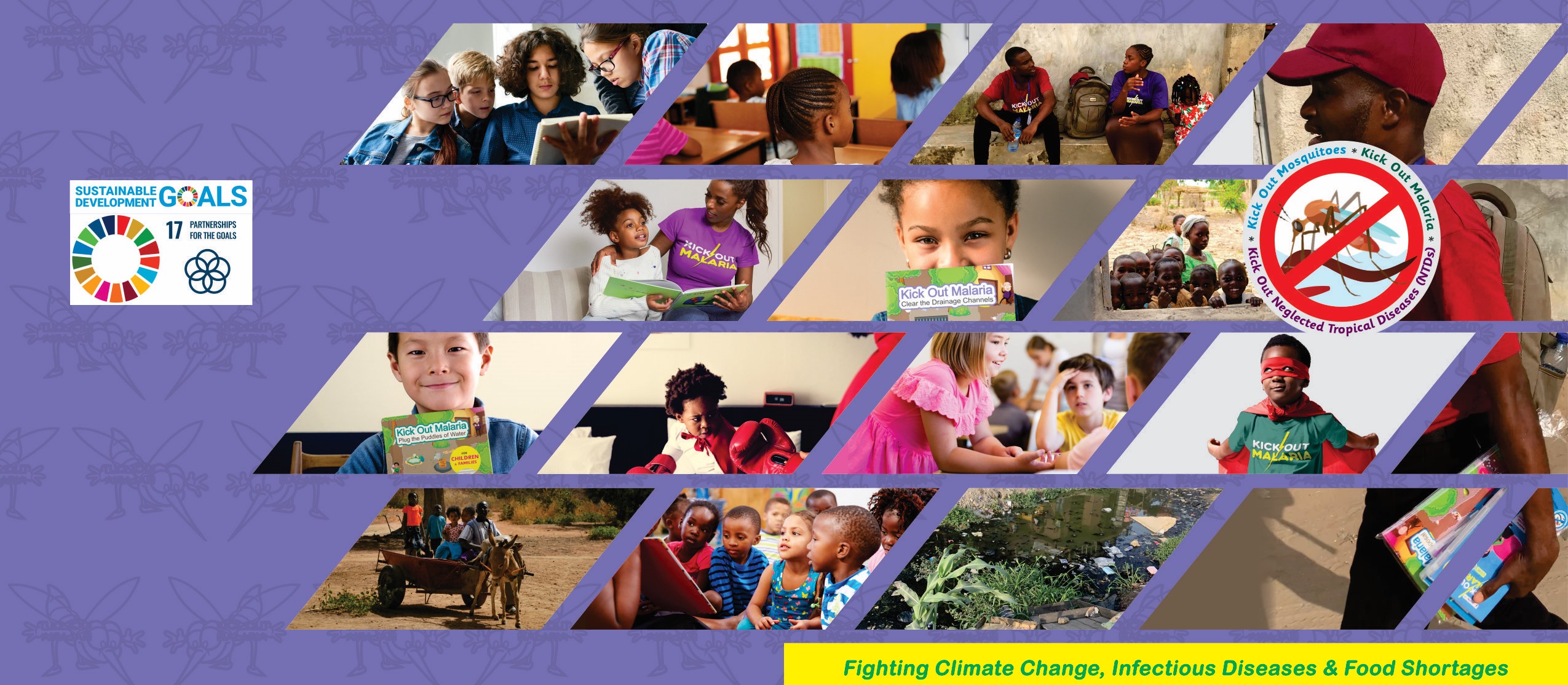 The Kick Out Malaria program is a project of Millennial Solutions LLC developed to help children and families fight climate change, the resultant spike in infectious diseases and food shortages worldwide. This program comprises the following initiatives: