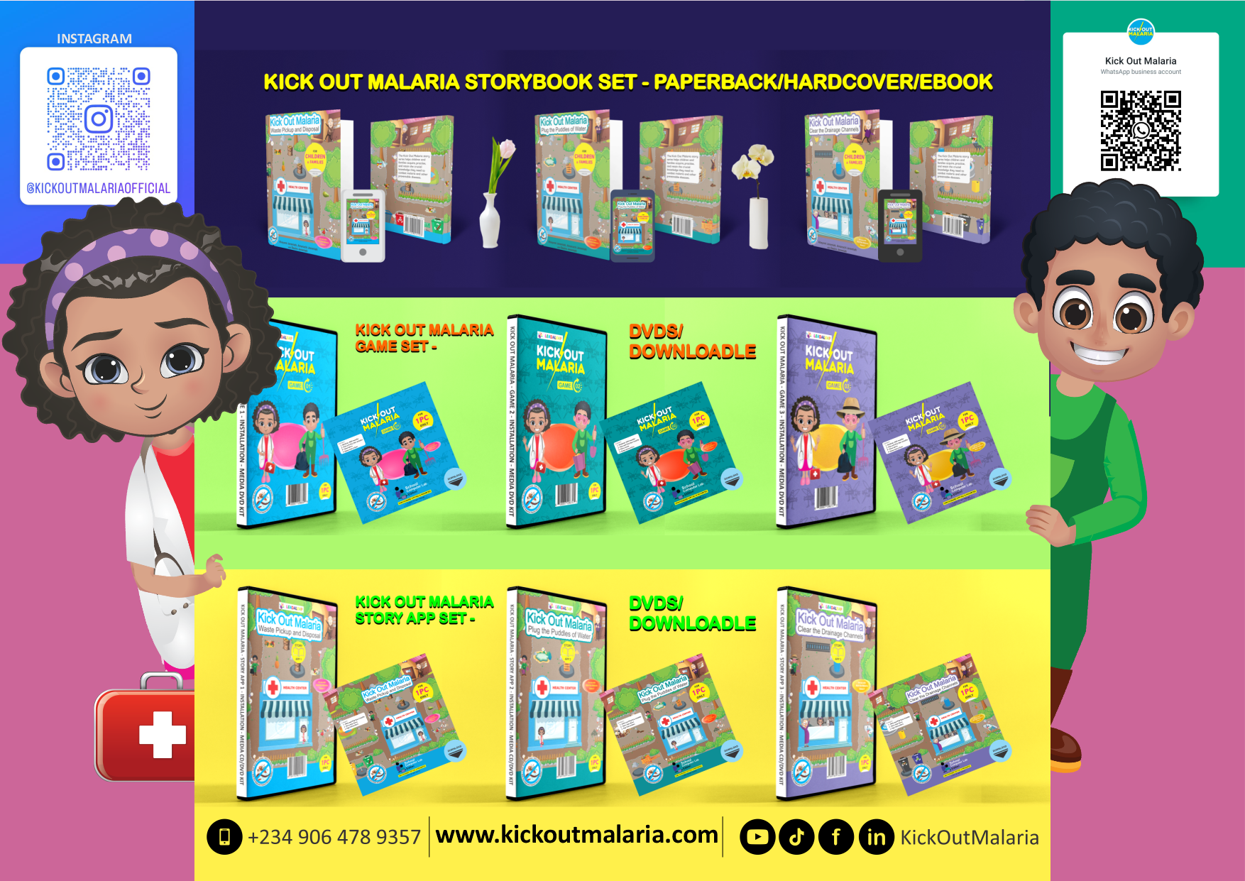 The Kick Out Malaria Story and Game series including storybooks, story apps, computer video games and cartoon video episodes is created to help children and families adopt a healthy lifestyle for their well-being and embrace positive attitudes toward tackling environmental pollution for the common good. For more information, please visit: https://www.kickoutmalaria.com