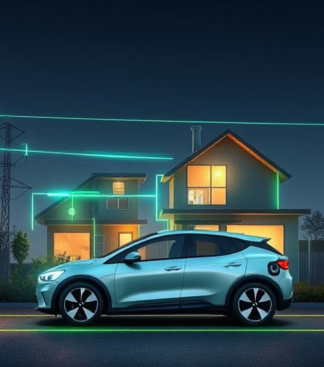 To design a bidirectional inverter that allows the battery of an electric or plug-in hybrid vehicle to be utilized as an active part of household energy consumption. The device must manage the conversion of direct current (DC) from the battery to alternating current (AC) to directly power domestic consumption, and vice versa, enabling vehicle charging from the grid.