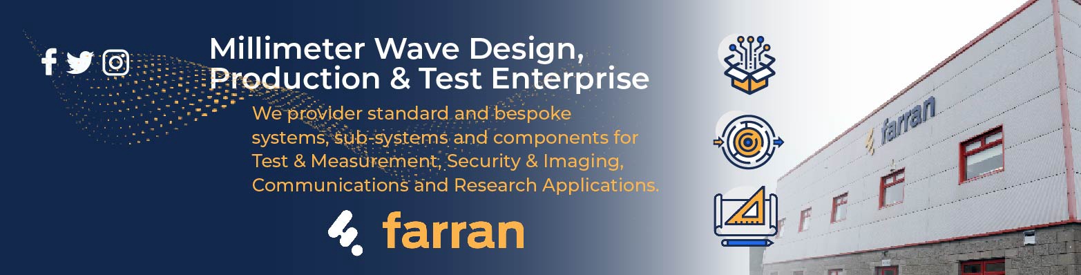 Farran is a design, production and test enterprise and offers standard as well as custom made solutions for various applications in microwave and millimeter wave range. We have products spanning range of frequencies from 20 to 500 GHz such as SSPAs, LNAs, up- and down-converters, filters, diplexers etc. as well as complex integrated up- and down-converters, radar front-ends and radiometric receivers in Q, V, E, W, D-band and beyond. The company is geared up to provide low- to mid-volume output from as low as 1-10 to 1000-2000 pieces per annum.