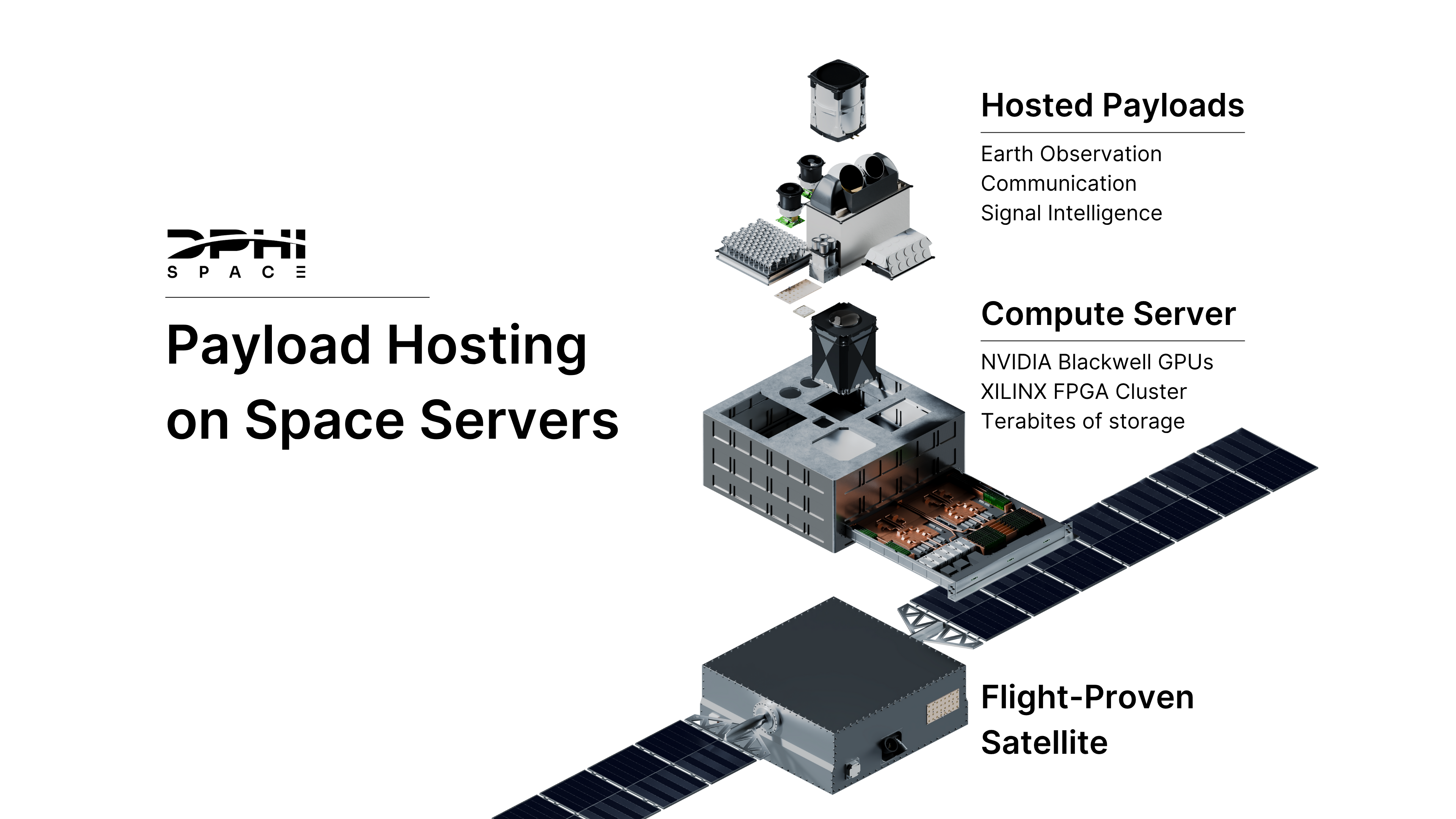 DPhi Space operates orbital servers that host both software applications and hardware payloads in space. Our satellites act as shared platforms that combine optical and RF sensors with a GPU cluster to provide cloud-scale AI capabilities onboard while simplifying satellite access.