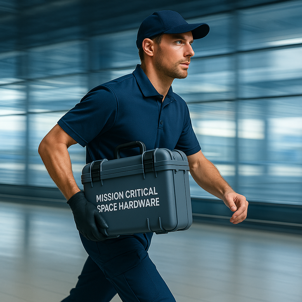 Hand-carry courier for urgent satellite parts and mission-critical components—fastest global delivery option.