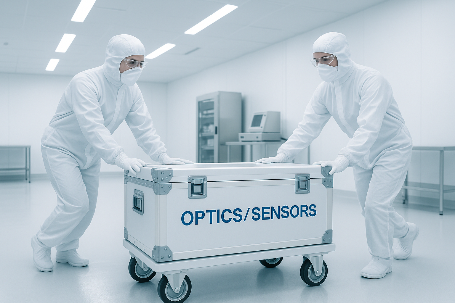 Contamination-controlled transport for optics, sensors, avionics, and fragile payload components with ISO-grade protection.