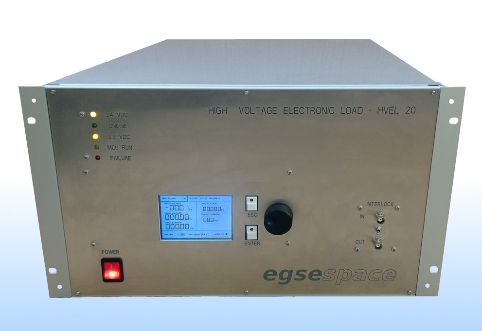 Modular, programmable high-voltage electronic load 20 kV / 400 W. Designed for FEEP thruster and other high-voltage test applications.