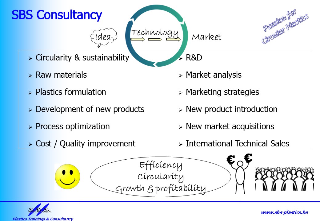 I can help you to improve the circularity of your current plastic products and to develop new sustainable solutions with plastic materials. My technical advice relate to the choice of raw materials, sustainable product design and process optimization. I provide also support for market analysis, marketing strategies, new product introduction and new market acquisitions.