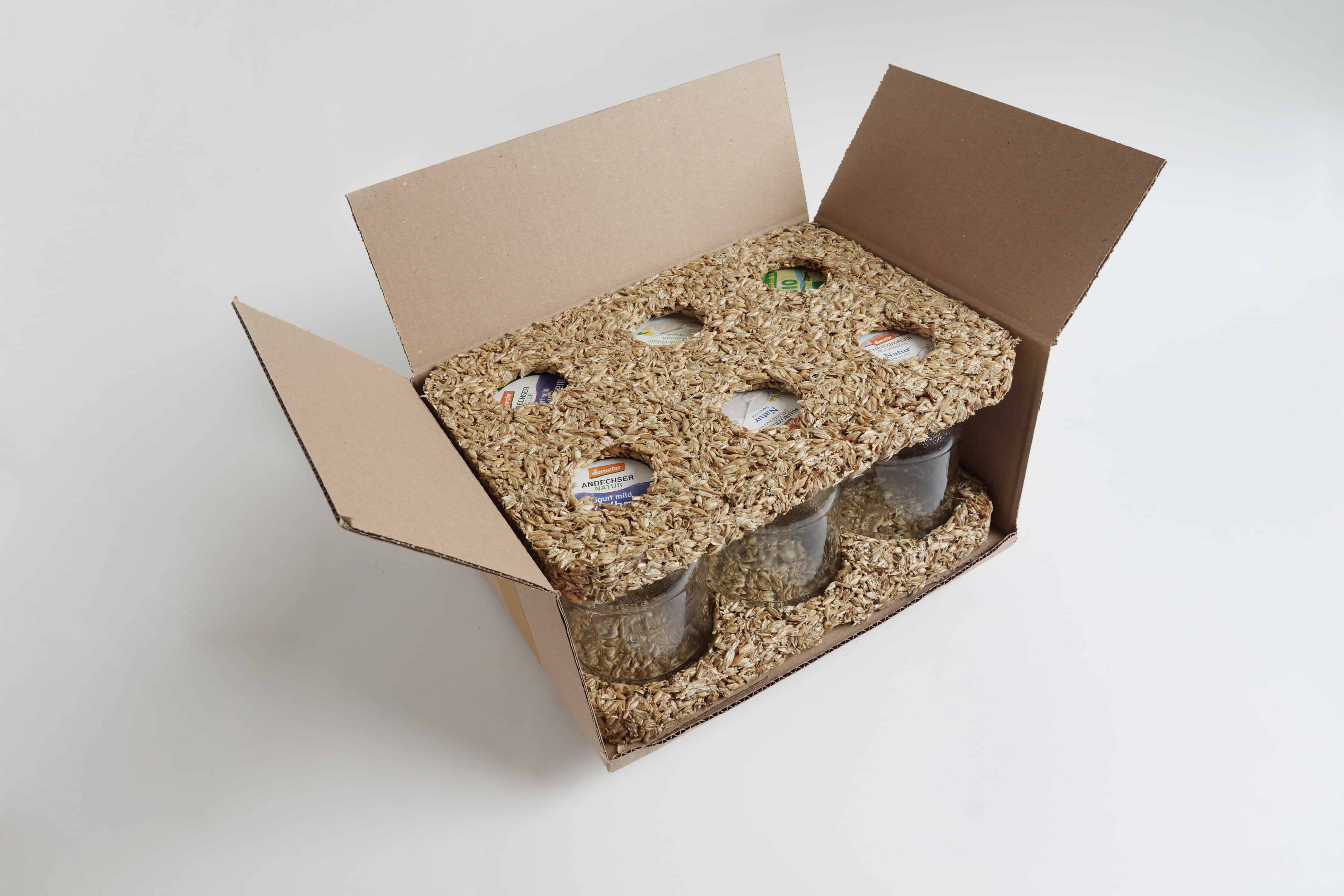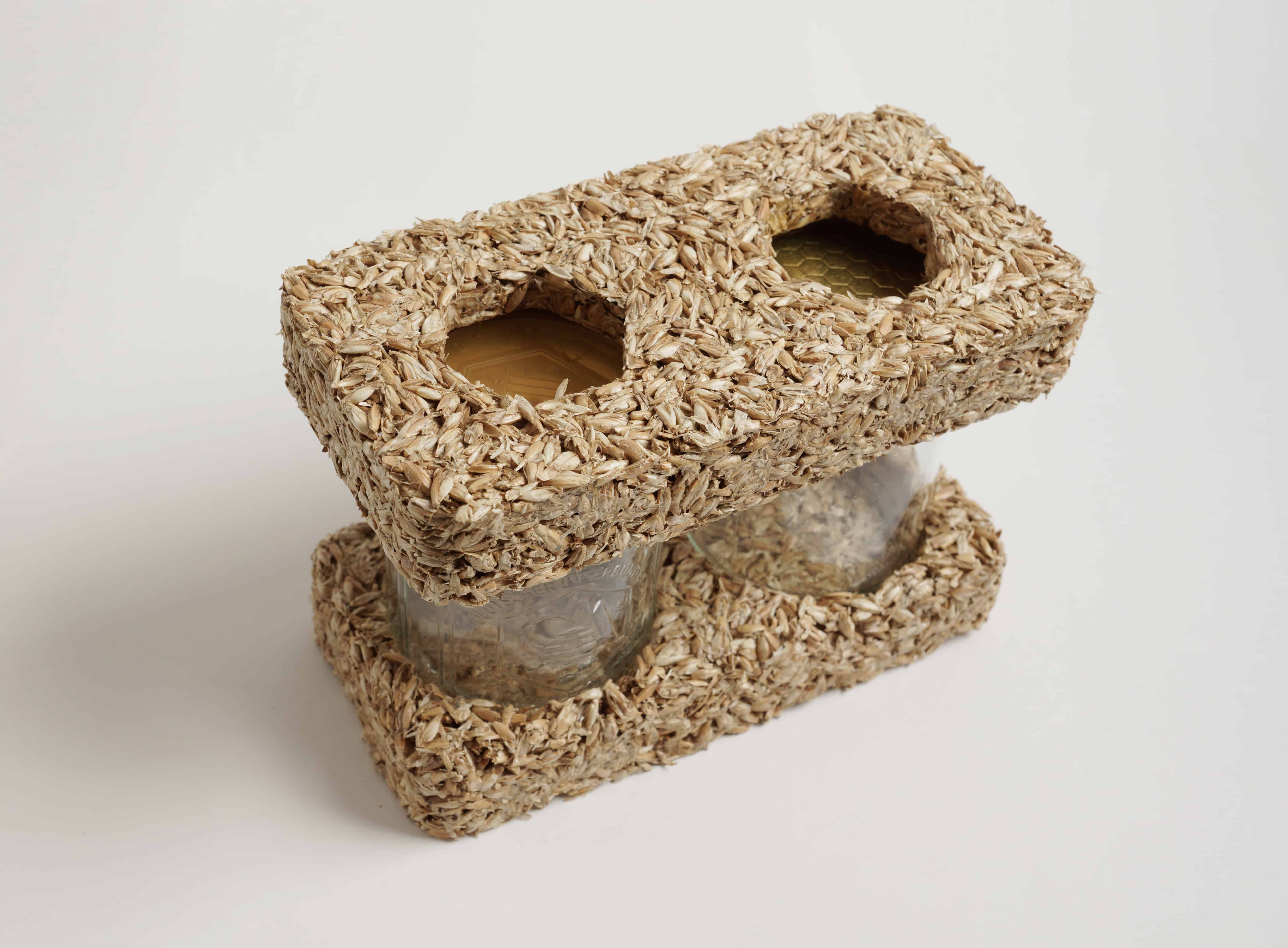 Made from grain husks - (=plant residuals from grain processing) sourced from local agricultural production - mixed with a natural binder. -