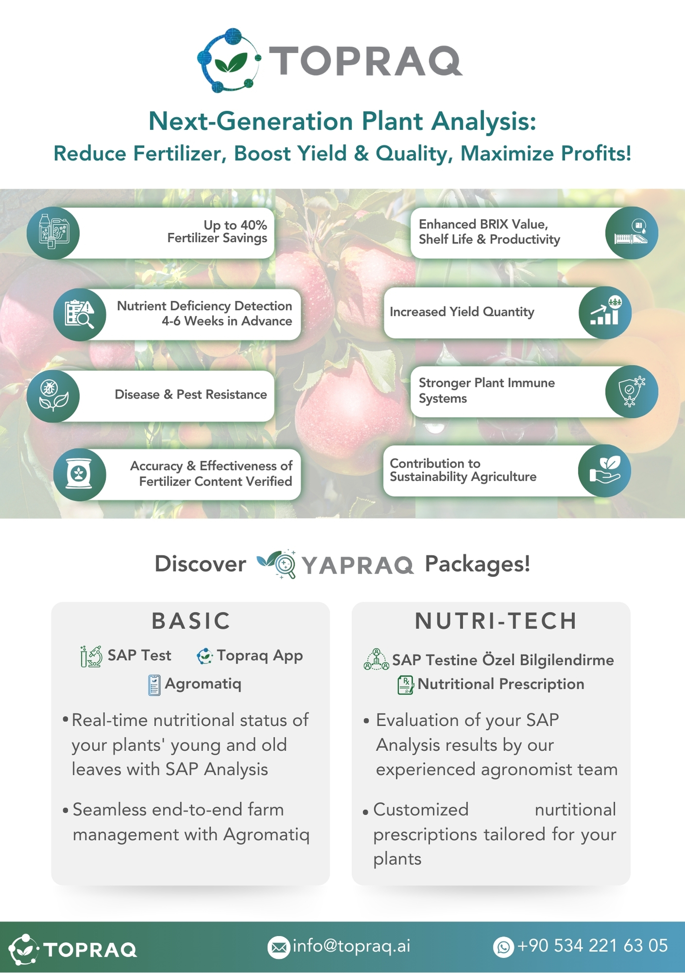 Farmers using Yapraq gain the dual benefit of increased profitability and environmental stewardship. By aligning agricultural practices with the principles of regenerative farming, Yapraq helps build a resilient, sustainable food system that addresses the challenges of climate change, resource scarcity, and soil degradation.