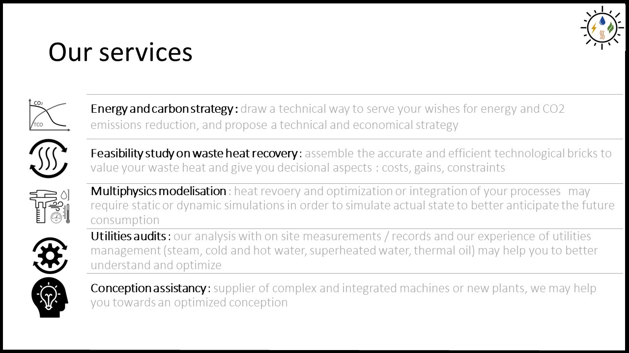Engineering company specialised in energy efficiency in industry by performant change of energy vector and heat recovery in Lyon.
