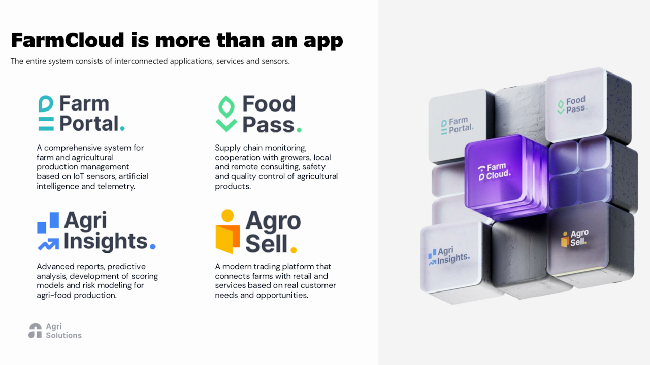 At its core, FarmCloud is an integration and collaboration backbone that unifies operational farm data with supply-chain and sustainability workflows. It aggregates data from IoT sensors and field devices, agricultural machinery and telematics, satellite/EO insights, and external business systems. FarmCloud can be delivered as SaaS, deployed on-premise, offered as white-label, and configured to fit different business models, crops, and geographies. It also integrates with enterprise stacks such as SAP, Salesforce, and Microsoft Dynamics.