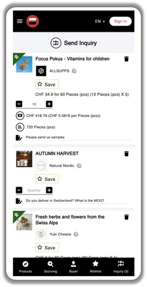 Receive itemized product inquiries on behalf of your partner suppliers or scout suppliers on behalf of your customers