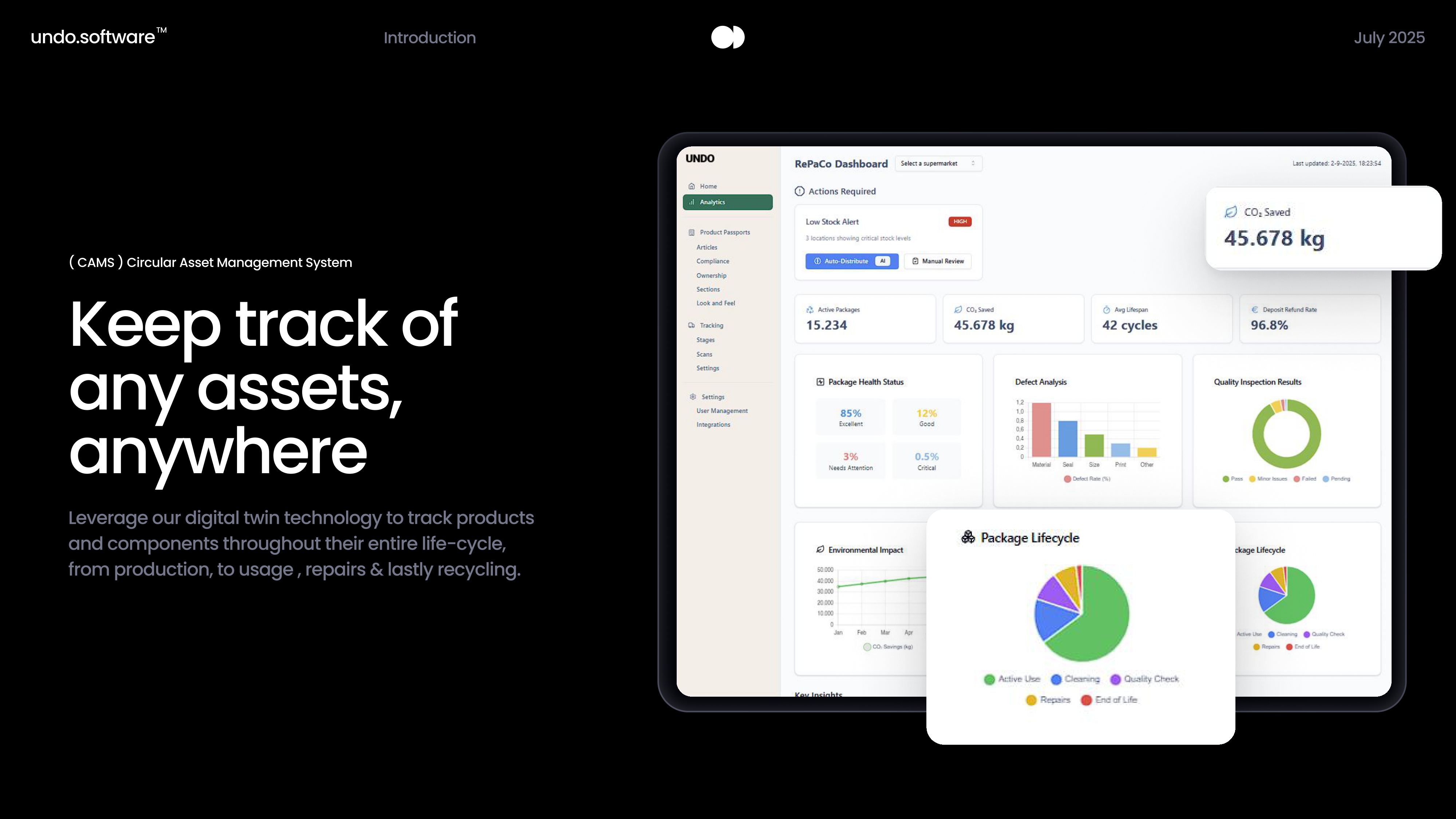 UNDO is a circular-economy SaaS enabling brands to track, manage and monetize products throughout their full lifecycle. With digital product passports, asset-management and return logistics, businesses gain full traceability, streamline compliance with upcoming EU regulations, and unlock sustainability-driven business models like rental, take-back/re-commerce or Products-as-a-Service.