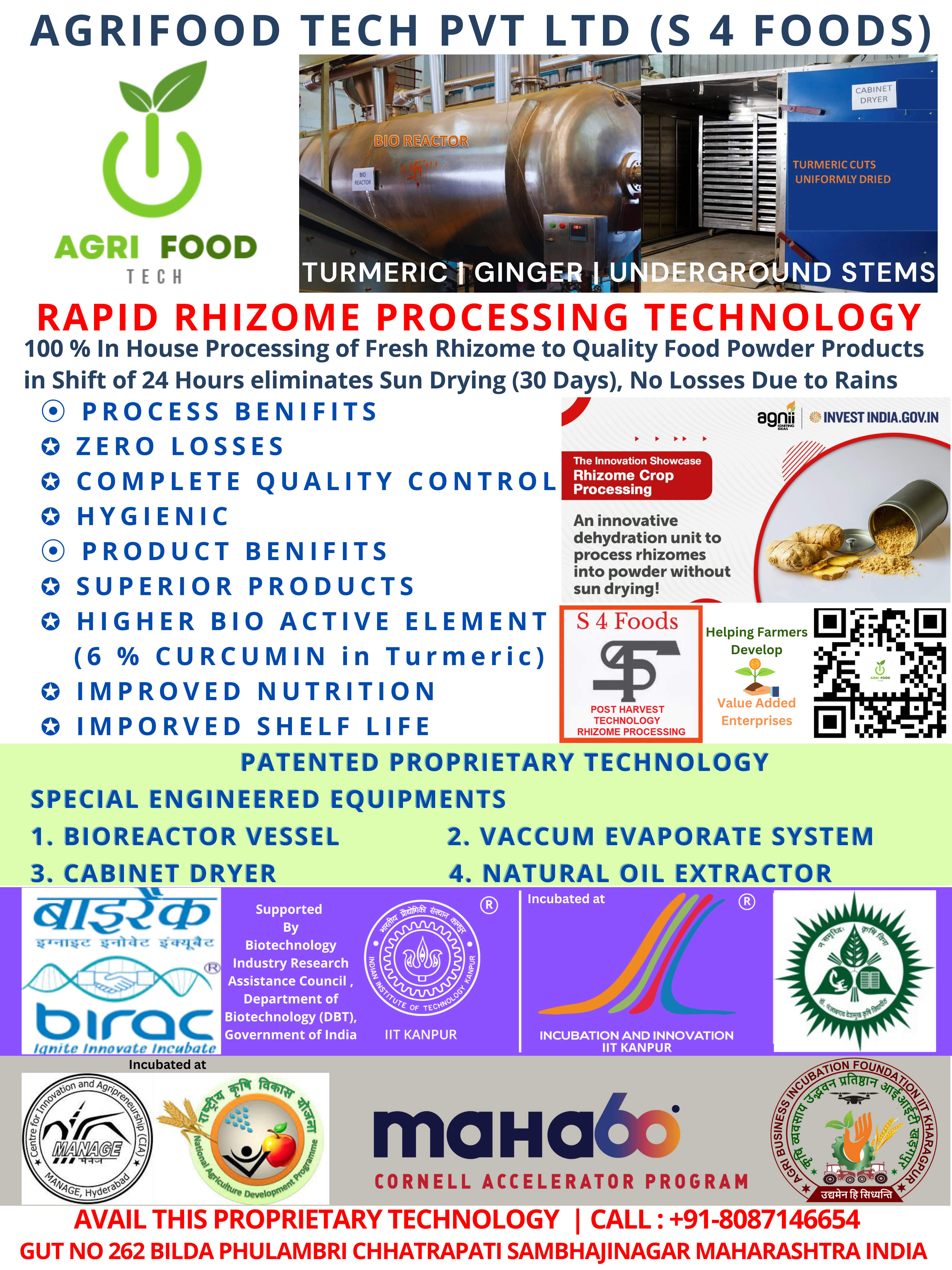 s4foods.com/CHHATRAPATI SAMBHAJI NAGAR, IndiaAgrifood Tech Pvt Ltd is a pioneering agritech company dedicated to transforming the way farmers process and add value to their crops. With a strong focus on innovation, sustainability, and farmer empowerment, we specialize in advanced post-harvest technologies that drastically reduce processing time and eliminate traditional challenges such as dependency on weather conditions and sun drying.