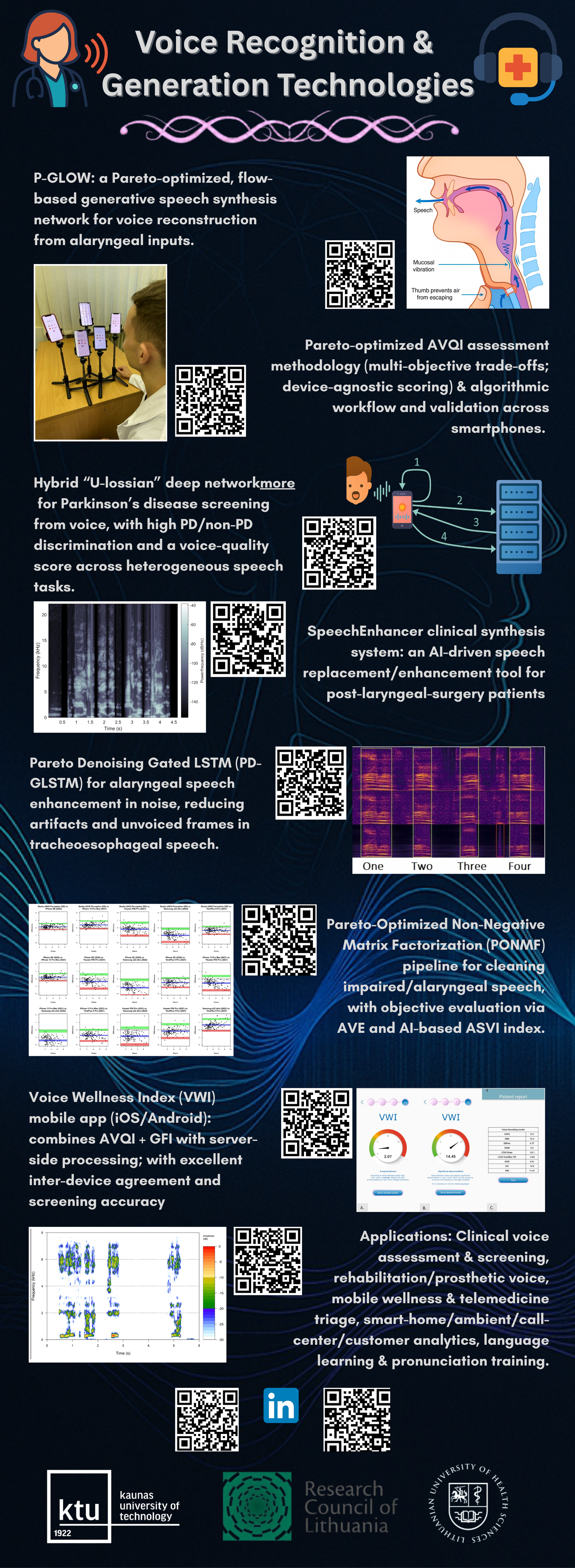 End-to-end voice technologies for clinical assessment, enhancement, rehab & mobile apps using AI driven processing and diagnostics.