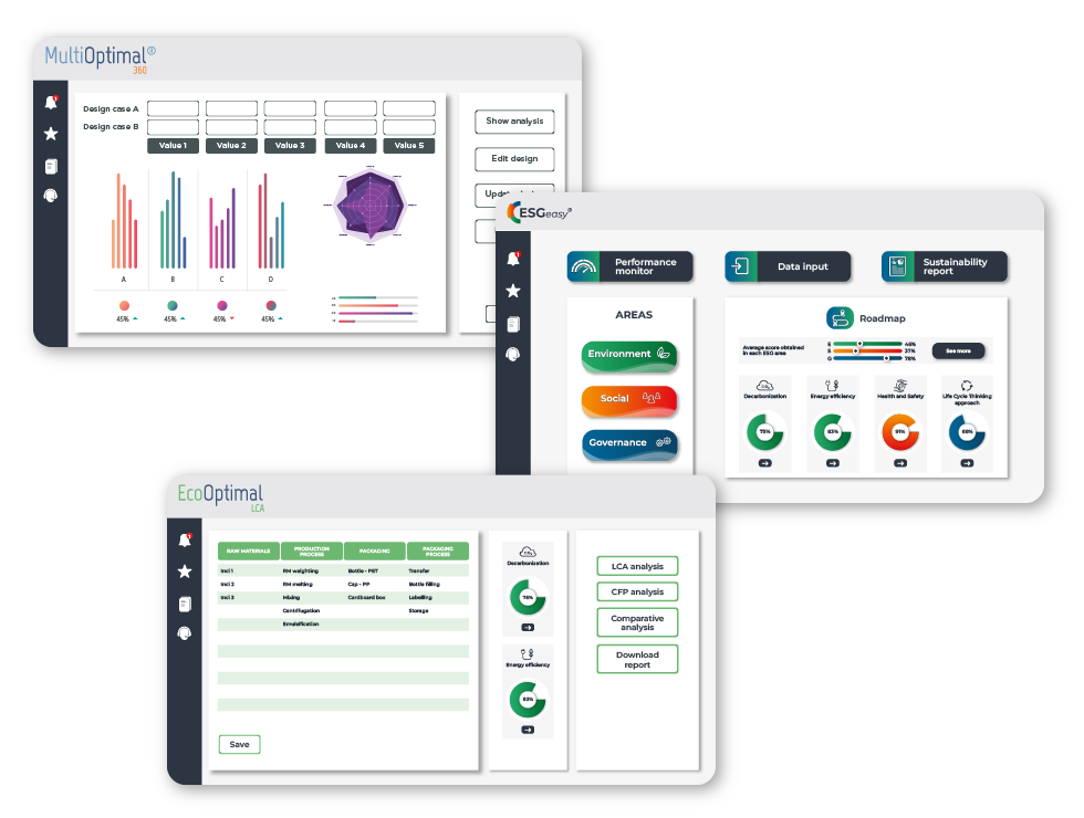 EcoOptimal LCA and ESGeasy® are our innovative software solutions, designed to empower companies in creating environmentally sustainable products while effectively monitoring their Environmental, Social, and Governance (ESG) performance. These tools facilitate comprehensive Life Cycle Assessment (LCA), enabling businesses to evaluate the environmental impacts of their products from conception to disposal. Our dedicated team is currently developing specialized versions of both software, tailored for the textile industry, addressing its unique sustainability challenges.