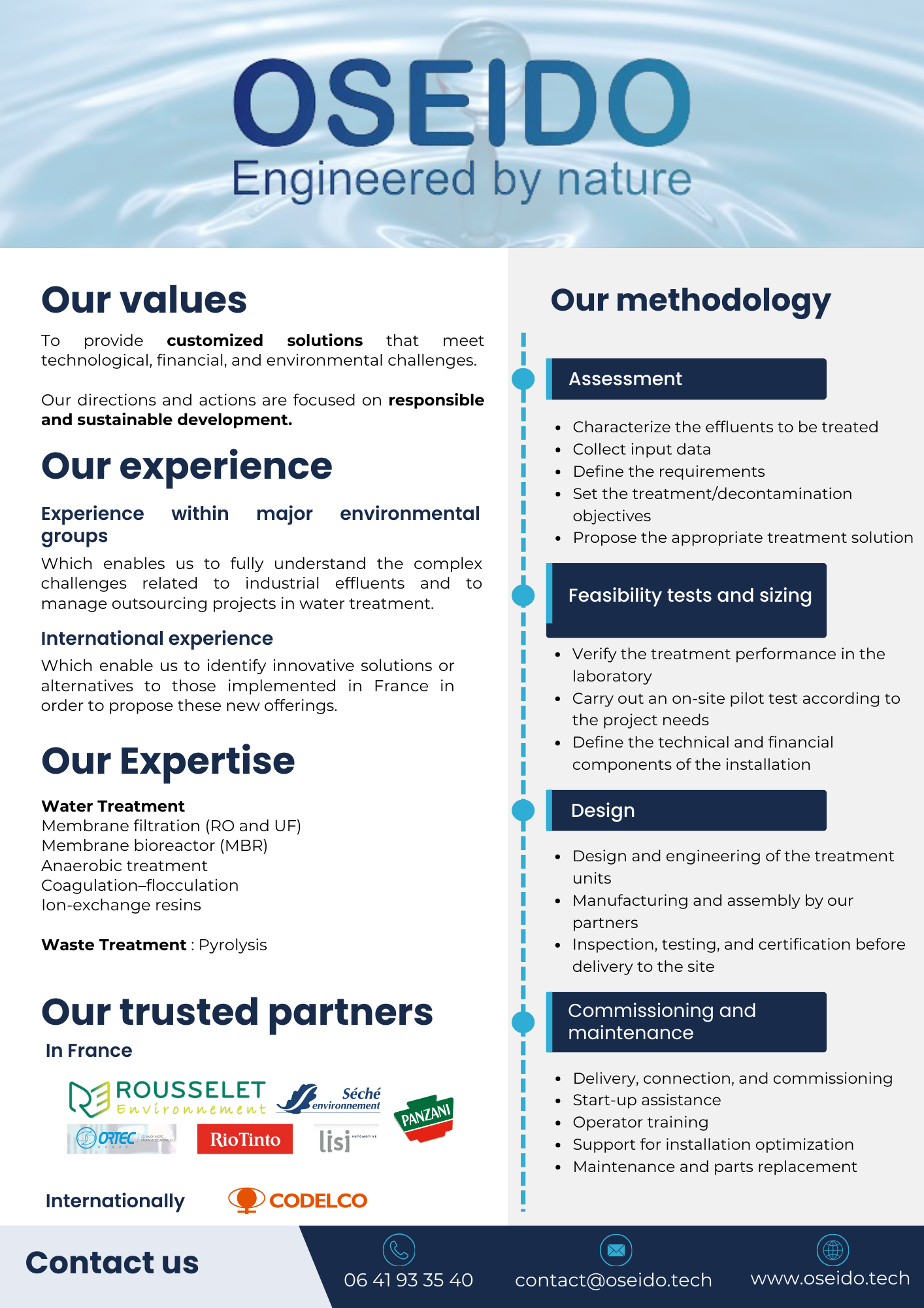 www.oseido.techMontréjeau, FranceOseido offers customized solutions to optimize efficiency and water consumption in industry and agriculture. We are a company on a human scale that covers the entire value chain of industrial water treatment projects: feasibility studies, design, manufacturing, installation, and maintenance. All manufacturing takes place in our partners’ facilities under our constant supervision to ensure quality and performance.